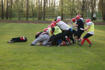 Zur Trainingseinheit am letzten Donnerstag bekamen die Crusaders Besuch von einem TV-Team von Propeller TV, einer Produktion von Studenten der Fakultät Medien der Hochschule Mittweida. Für die Rubrik 'Abgefahren' wurde nicht nur Head Coach Ralph Dietrich interviewt, Moderation Jenny stürzte sich mit Pad, Helm und Trikot mitten in das Trainingsgeschehen. Am Blockschlitten, als Linebacker und als Runningback konnte sie sich zusammen mit den Spielern versuchen. Für die Crusaders war dies eine willkommene Abwechslung im Training, wofür sie sich auf eigene Art und Weise mit einer Dusche aus dem Gatorade-Fass bedankten. Der gedrehte Beitrag wird voraussichtlich im September bei Propeller TV zu sehen sein.
