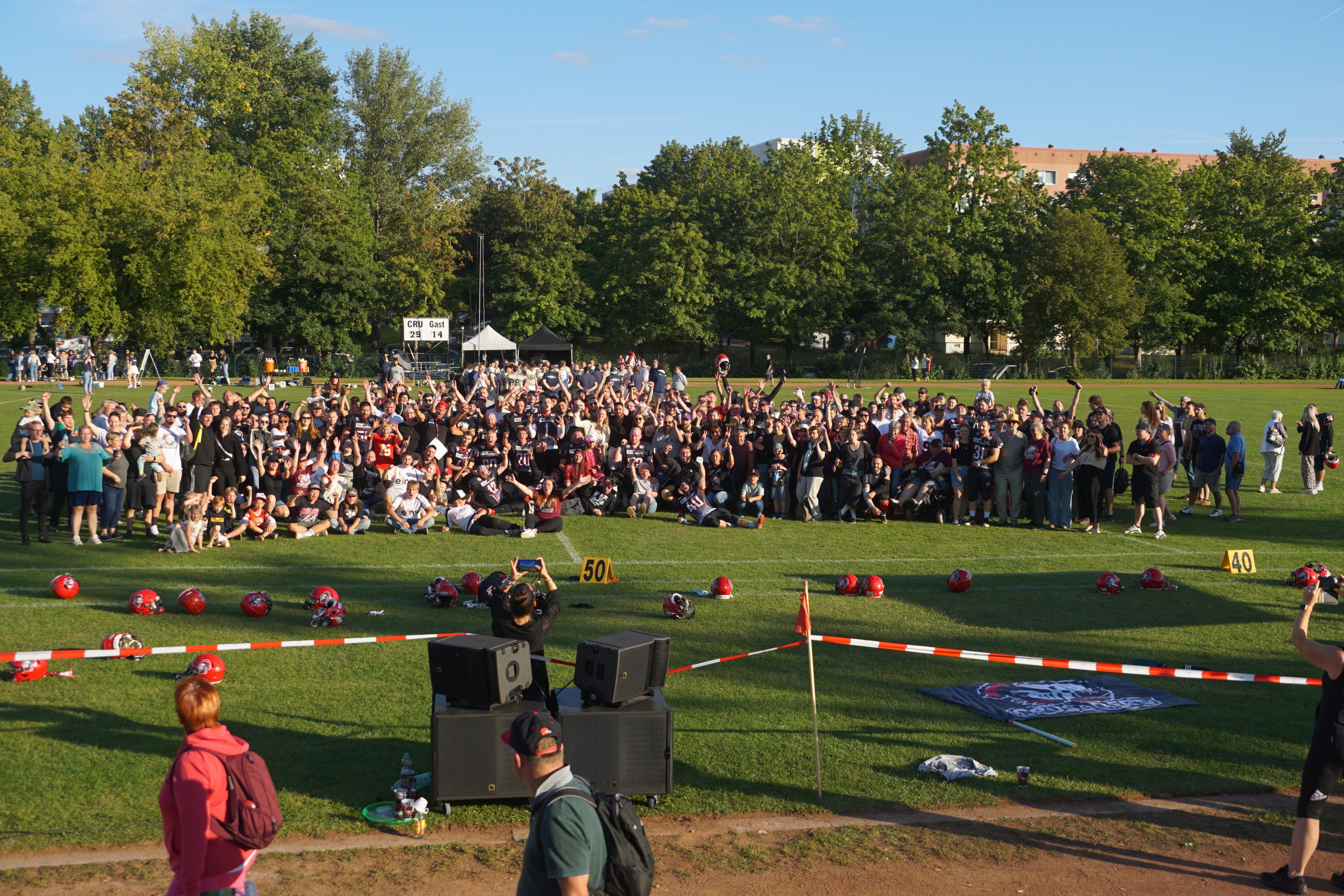 Der Jubel auf Chemnitzer Seite über den Sieg und die damit erreichte Meisterschaft kannte keine Grenzen. Gemeinsam mit Freunden und Fans wurde der Sieg auf dem Feld gefeiert. Ein weiterer historischer Meilenstein in der Geschichte der Chemnitz Crusaders ist damit erreicht. Doch die Saison ist noch nicht vorbei. Das letzte Spiel findet am kommenden Sonntag in Jena statt. Danach folgt dann die Relegation. In zwei Duellen mit dem Meister der Oberliga Ost wird dann der Aufsteiger in die Regionalliga Ost ermittelt. Die Relegation beginnt nach derzeitiger Planung am 27. September mit dem Heimspiel auf dem Ust-Field. Eine Woche später folgt dann das Rückspiel - mit an Sicherheit grenzender Wahrscheinlichkeit in Berlin! Keine Zeit zum Ausruhen, aber kein Hinderungsgrund zum Feiern. Die Chemnitz Crusaders bedanken sich bei allen Freunden, Fans und Unterstützern, welche den heutigen Spieltag zu einem unvergesslichen Erlebnis gemacht haben.